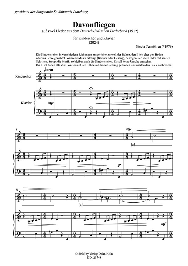 | Nicola Termöhlen | Davonfliegen (2024) für Kinderchor und Klavier Partitur, zgl. Chorpartitur  M-2020-4748-4 |