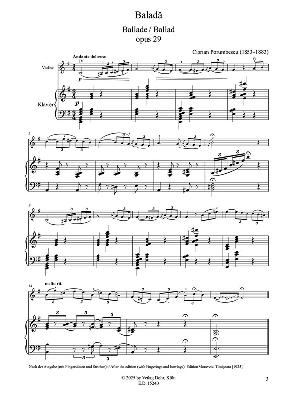 | Ciprian Porumbescu | Ballade op. 29 Partitur und Stimme  M-2020-3240-4 |