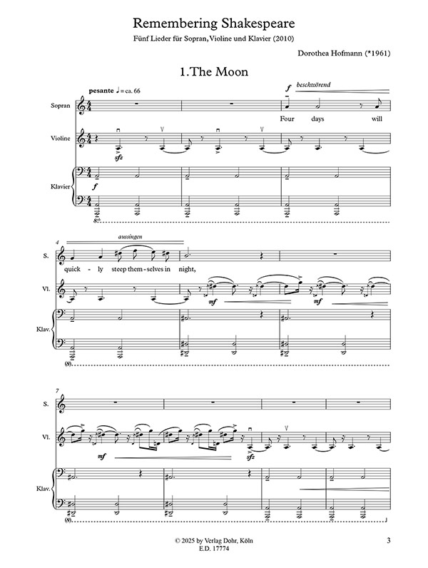 | Dorothea Hofmann | Remembering Shakespeare (2010) Spielpartitur und Violinstimme M-2020-3774-4 |