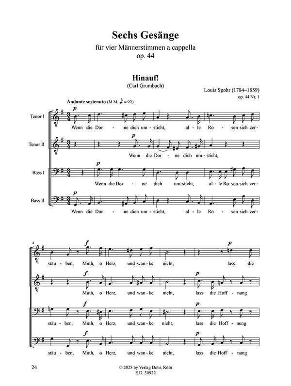 | Louis Spohr | Spohr-Lied-Edition, Supplement II Vierstimmige Gesänge für Männerstimmen hrsg. von Susan Owen-Leinert und Michael Leinert M-2020-4922-8 |