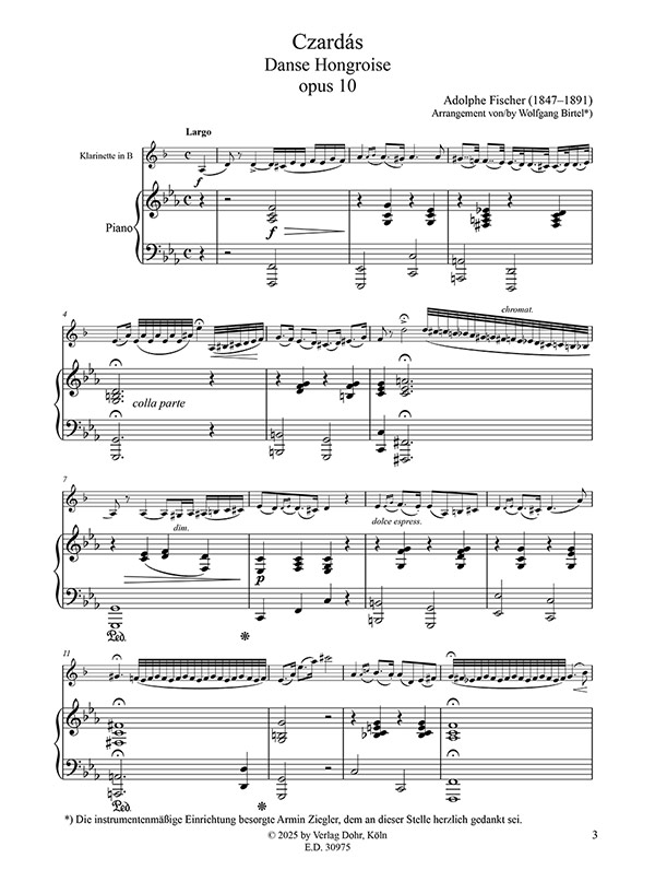 | Adolphe Fischer | Czardás op. 10 für Klarinette (B) und Klavier eingerichtet von Wolfgang Birtel Partitur und Stimme M-2020-4975-4 |