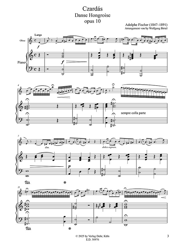 | Adolphe Fischer | Czardás op. 10 für Oboe und Klavier eingerichtet von Wolfgang Birtel Partitur und Stimme M-2020-4976-1 |