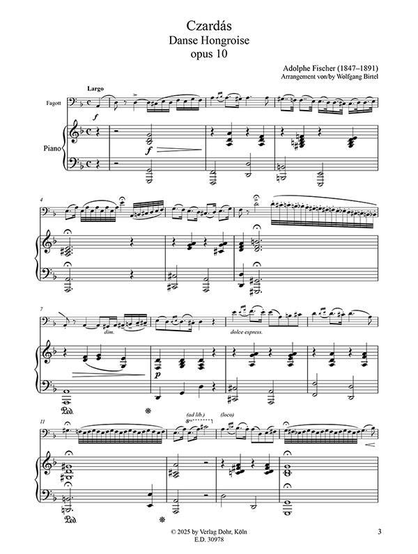| Adolphe Fischer | Czardás op. 10 für Fagott und Klavier eingerichtet von Wolfgang Birtel Partitur und Stimme M-2020-4978-5 |